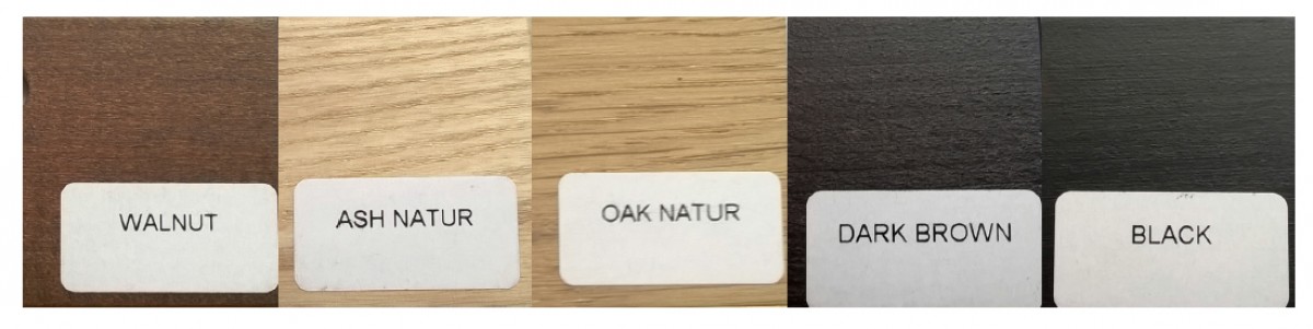 - Modelul poate fi realizat la comandă într-o gamă variată de nuanțe de lemn și tapițerii. Canapeaua poate fi tapițată cu piele sintetică sau cu stofă.