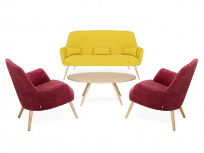 - Shine Sofa este o canapea de relaxare, cu baza formată din 4 picioare de lemn masiv, finisaj natural și piciorușe de protecție a podelei.