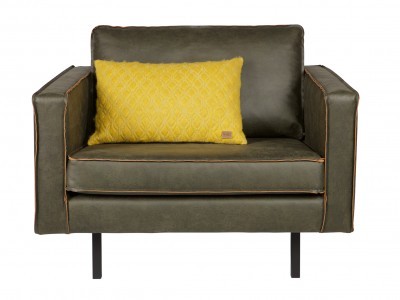 - Fotoliu realizat din piele naturală reciclata, cu picioare negre din metal.