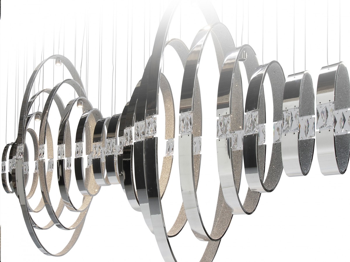 Clear lines resulting in organic classical sculptures, crystalized with Swarovski Fabric crystals inside and connected with the most sparkling Swarovski Strass crystals. Crystals as the heart of fascinating sculptures.