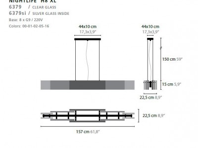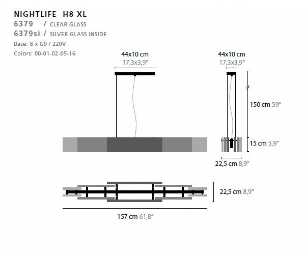 - Base: 8 x G9 / 220V / MAX. 40W