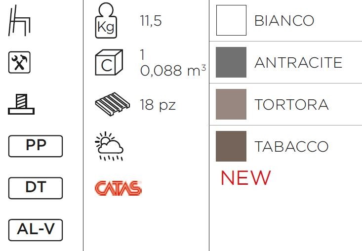 • Culori disponibile: bianco, antracite, tortora, caffe.