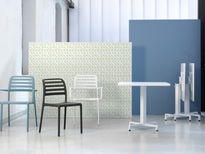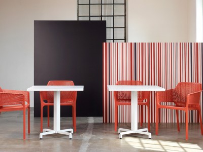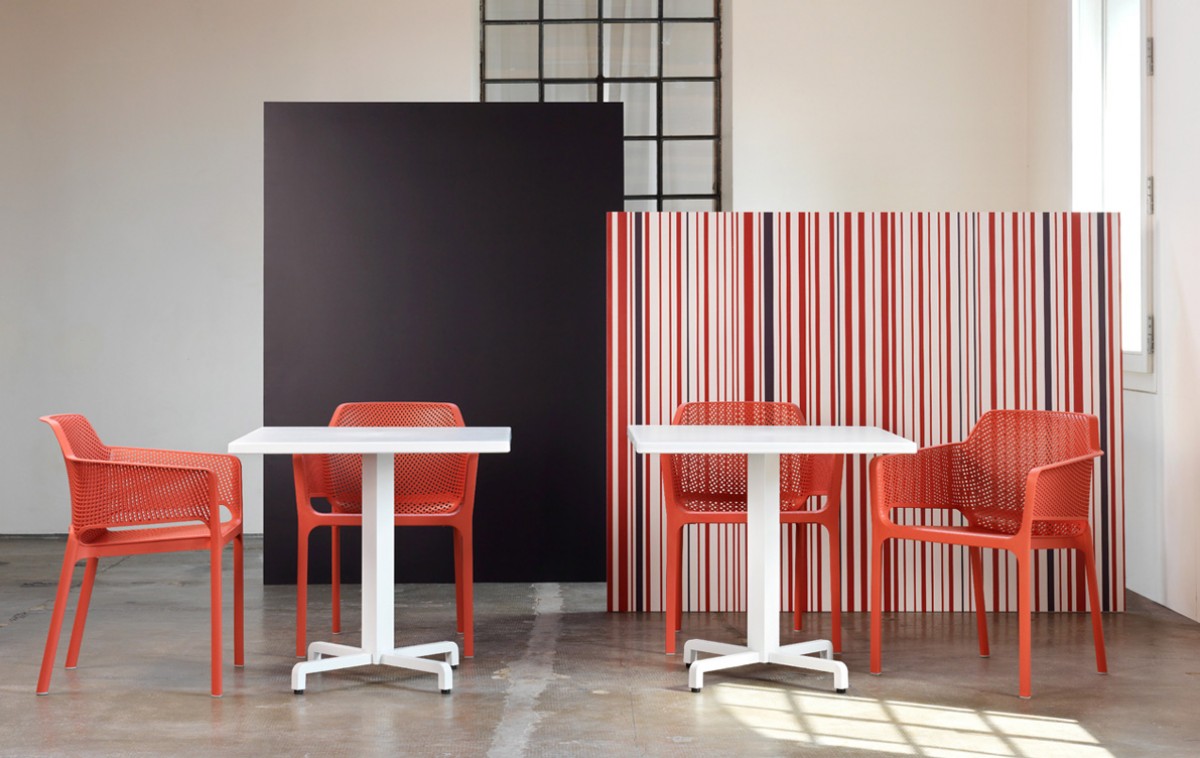 - Baza de masă Fiore este realizată din aluminiu, vopsit în câmp electrostatic și acoperit cu poliester.
