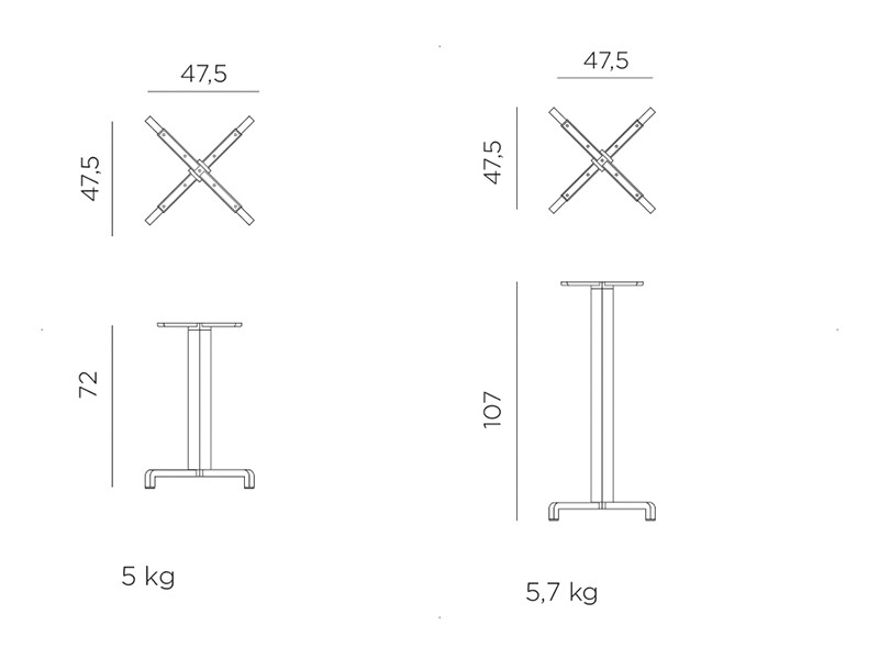 - Disponibil în diferite dimensiuni. Blaturile care se potrivesc: Ø 60 - Ø70 - Ø 80 - 80x80 cm și Ø 60 - Ø70 - 60x60 cm, 70 x 70 cm.