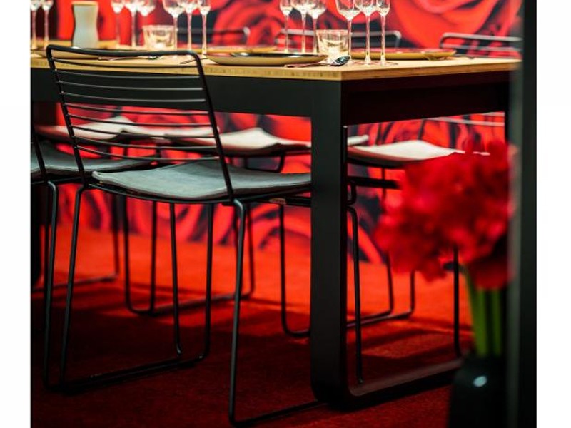 - Blatul de masă melaminat hardcore (12 mm) poate fi folosit atât în interior, cât și în exterior.
