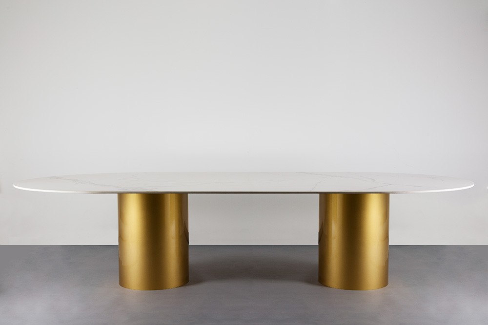 - Bază din oțel pentru masă, disponibilă în diferite finisaje.