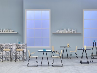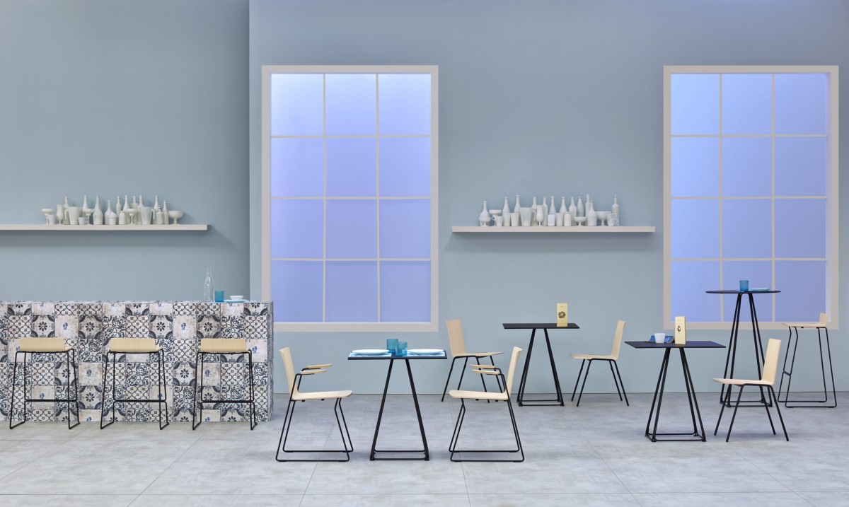 - Baza este alcătuită din 4 picioare din oțel și poate fi combinată cu blaturi de diferite dimensiuni și finisaje.