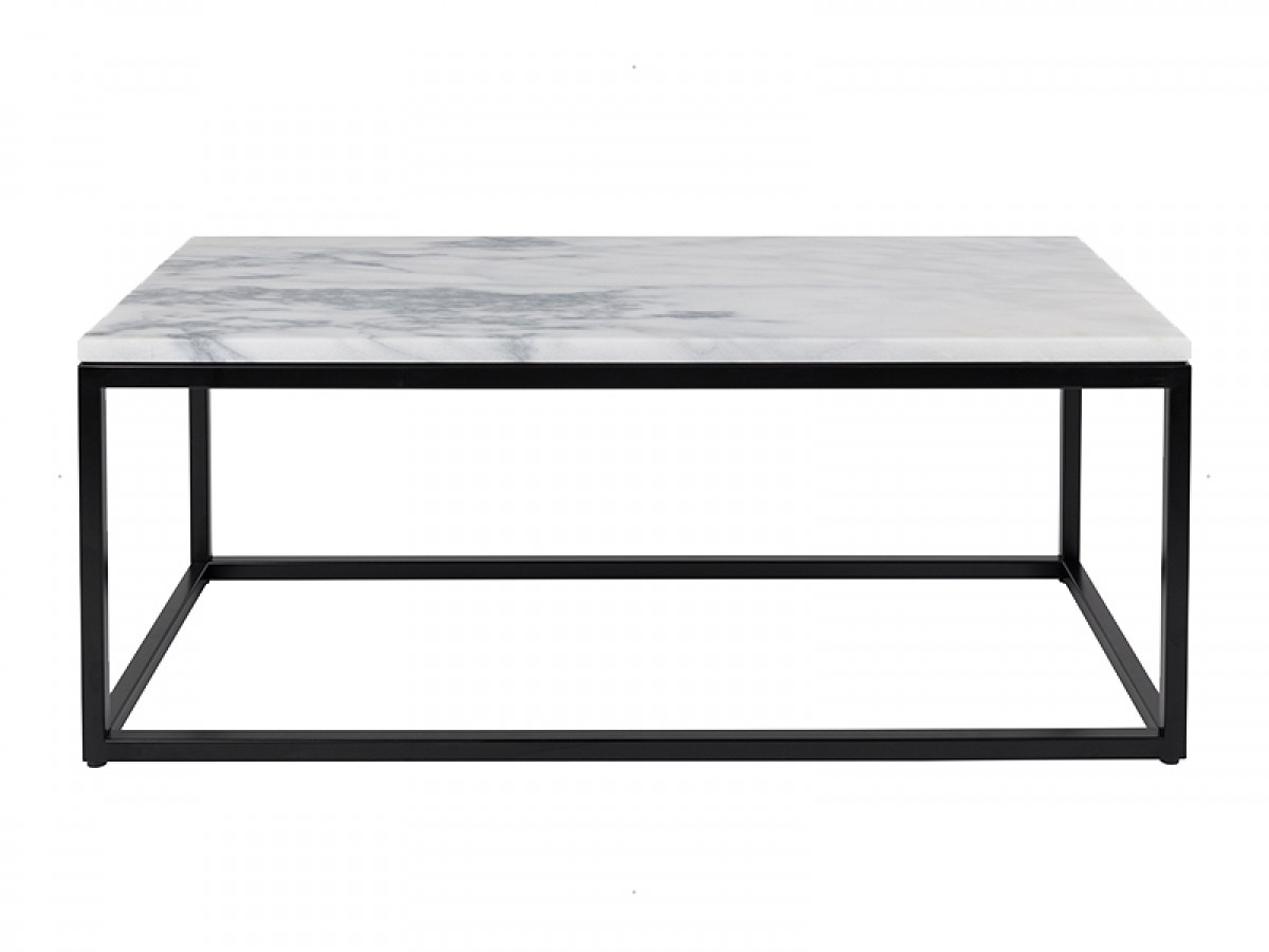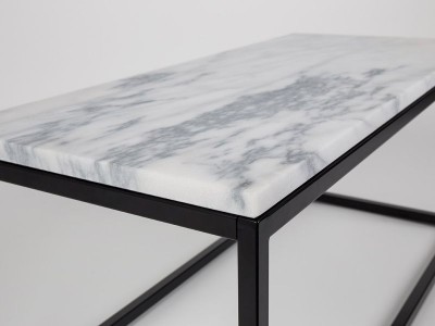 - Măsuță de cafea cu bază dreptunghiulară din oțel și blat de marmură albă.