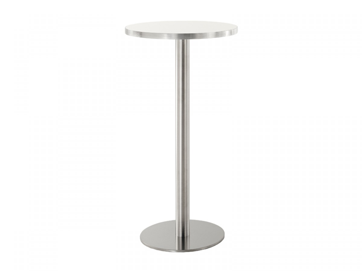 - Bază metalică centrală din inox satinat, pentru mese înalte de bar.
