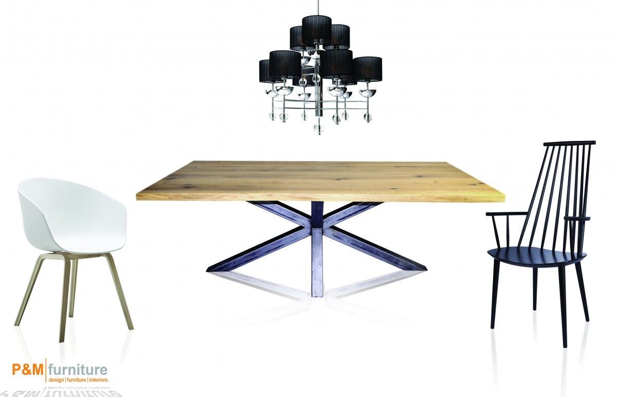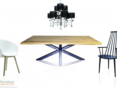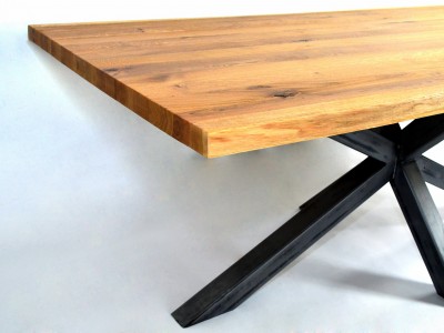 - Blatul mesei este realizat din scânduri rustice de stejar. Baza este fabricată din oțel netratat. Este o bază foarte robustă și stabilă sub forma unui X dublu extra lung. Blatul este livrat separat de bază. Blatul mesei este format din 1 întreg și baza este formată din 2 părți.