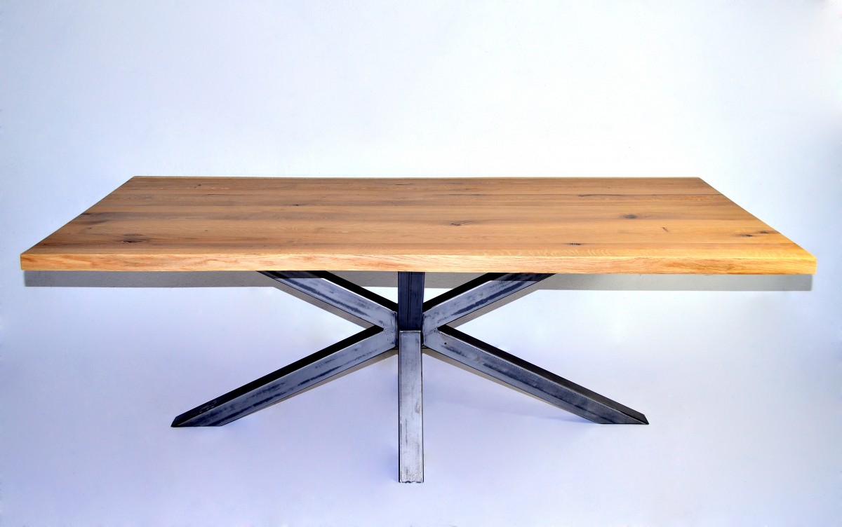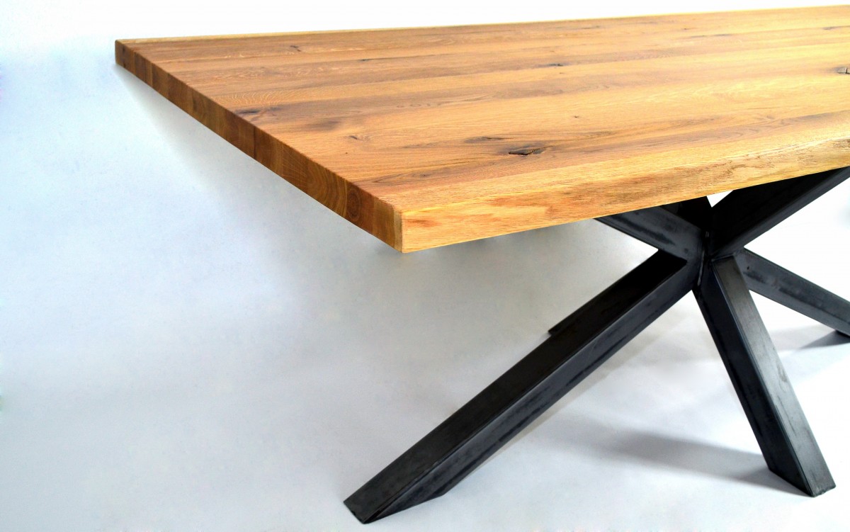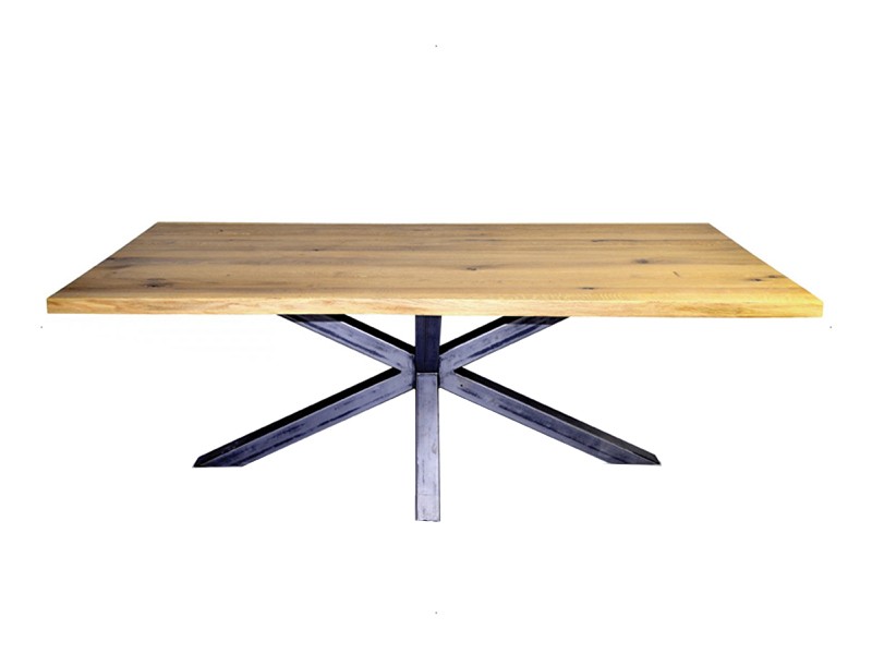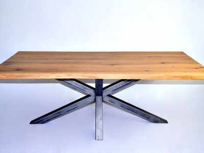 - Masă cu un blat de stejar de 4 cm și o bază dublă din oțel X (extra lung 8x8cm)