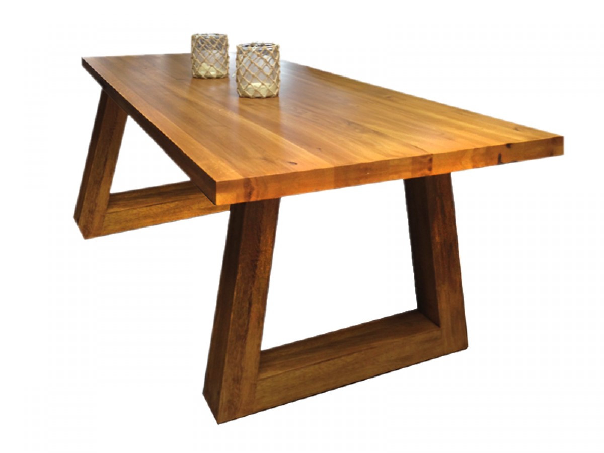 - Masă cu bază de masă din stejar model Trapezium FineLine + Blat de masă din stejar 28mm