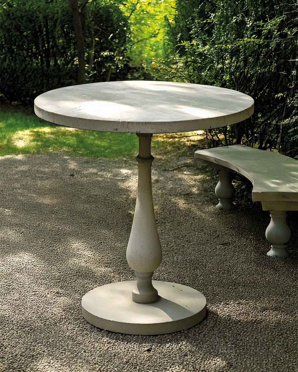- Picior de masă din ciment, robust și elegant, adaptabil în diverse finisaje și mărimi.