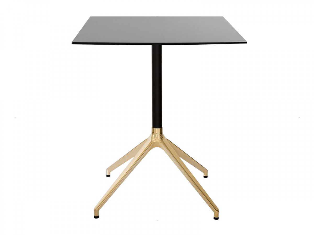 - Baza de masă Elisee 3 are o coloană tubulară subțire, neagră, de Ø 4.5 cm și o bază cu 4 picioare aurite de Ø 72cm din fontă.