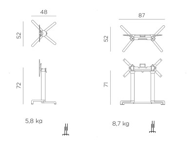 - Bază de masă dublă, disponibilă și în variantă cu un singur picior de sprijin.