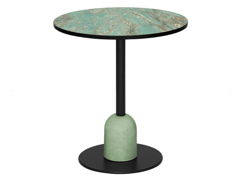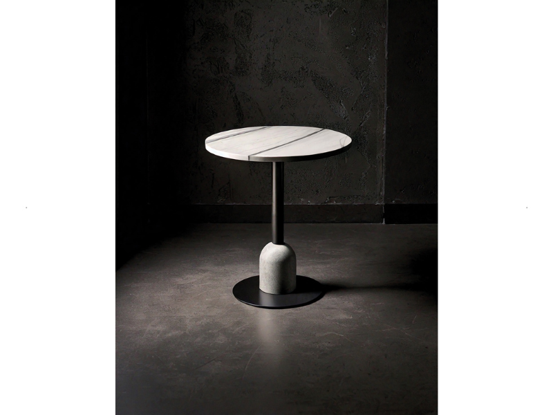 - Masă cu bază din ciment, disponibilă în diferite dimensiuni și finisaje.