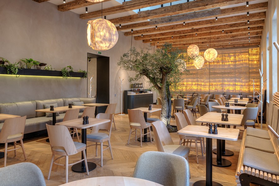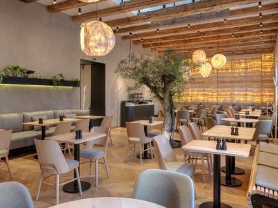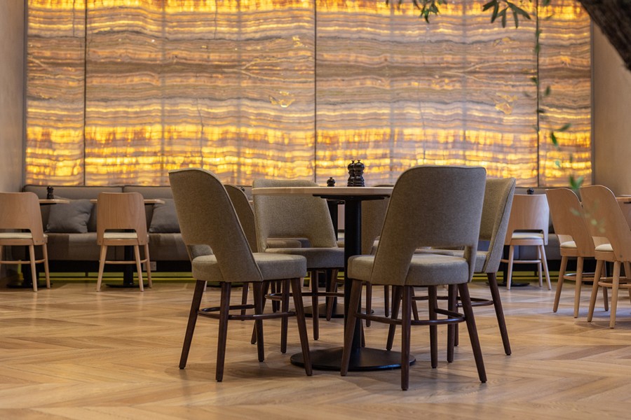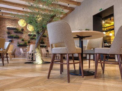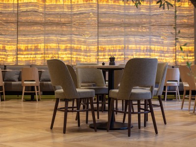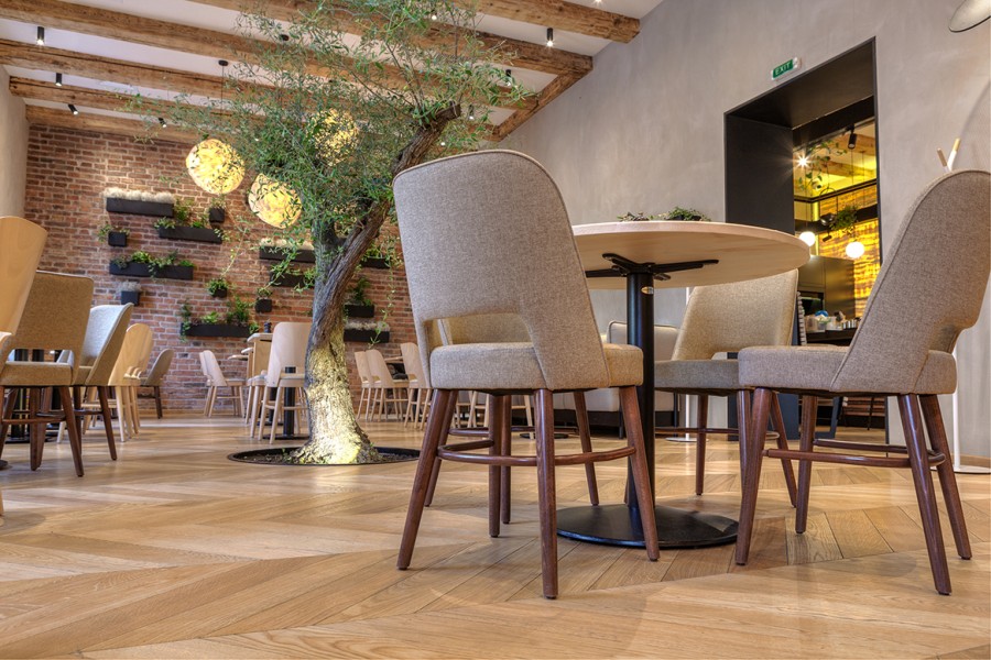 - Scaun realizat din lemn de fag și vopsit cu lac poliuretanic, pentru rezistență la trafic intens.