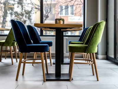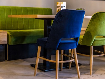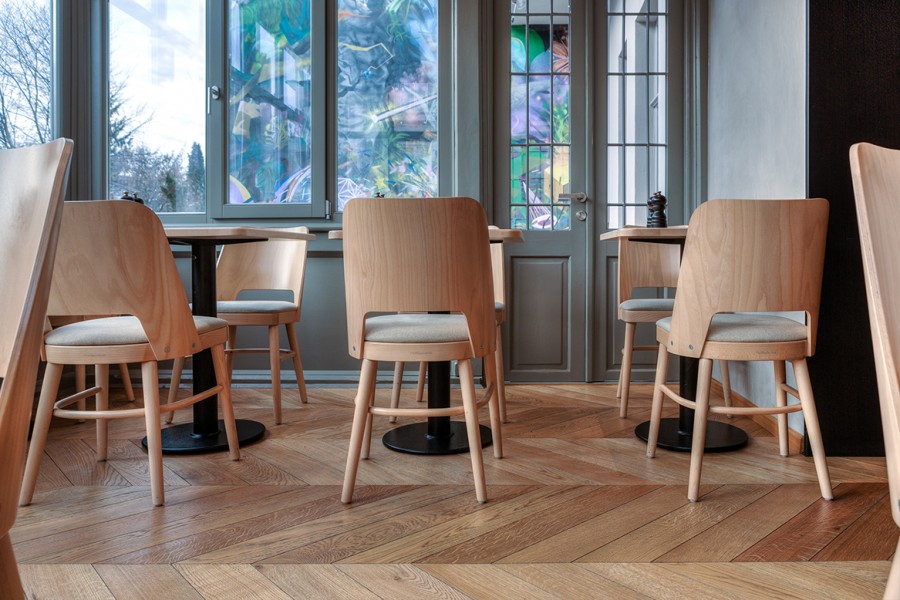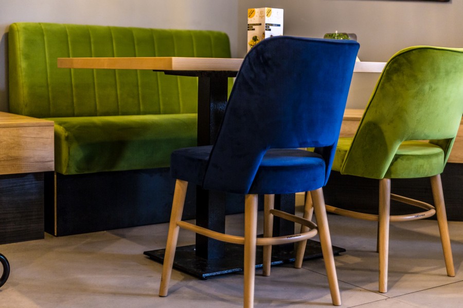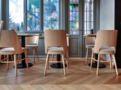 - Scaun realizat din lemn de fag și vopsit cu lac poliuretanic, pentru rezistență la trafic intens.