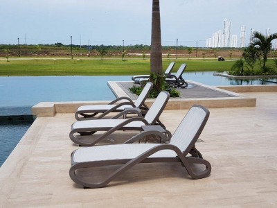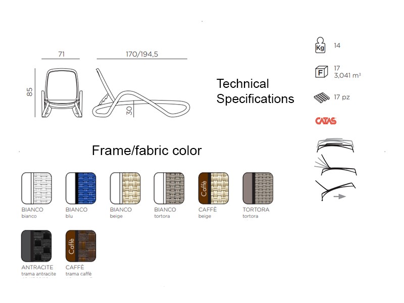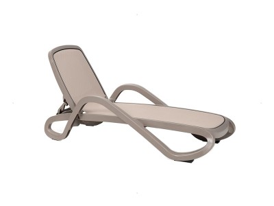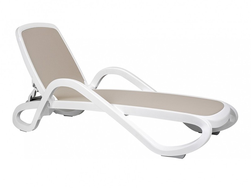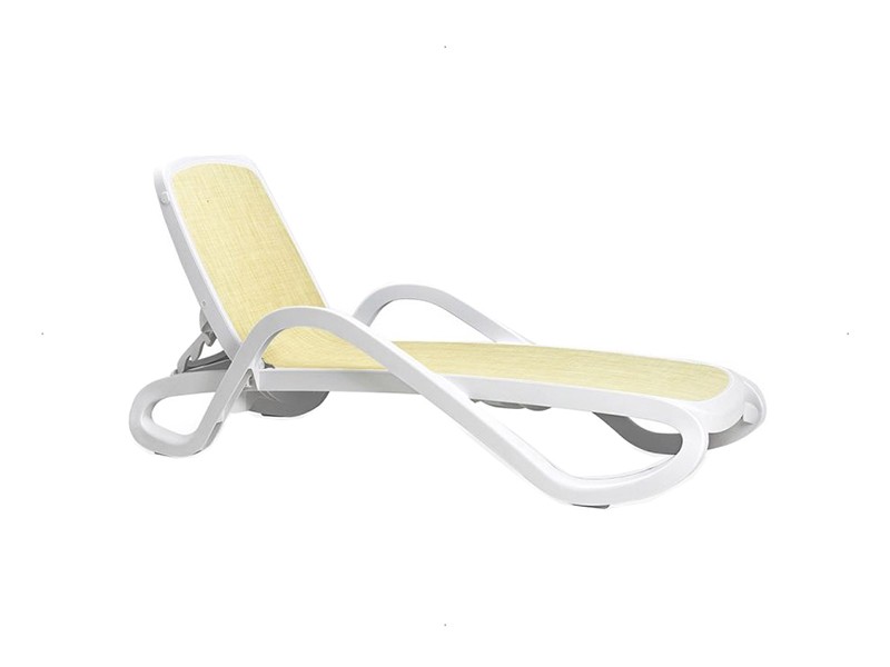 - Șezlong cu mânere, având rama realizată din polipropilenă, tapițată cu material sintetic, poros.