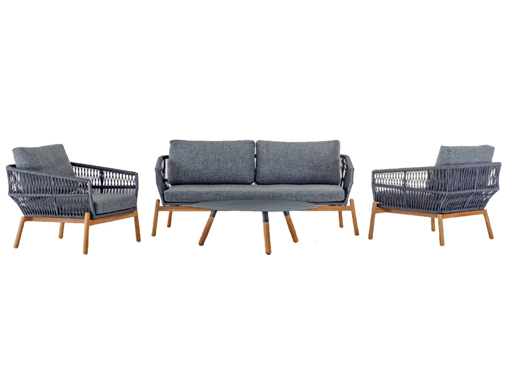 - Compus din două fotolii, un divan cu două locuri și o măsuță cu blat din aluminiu.