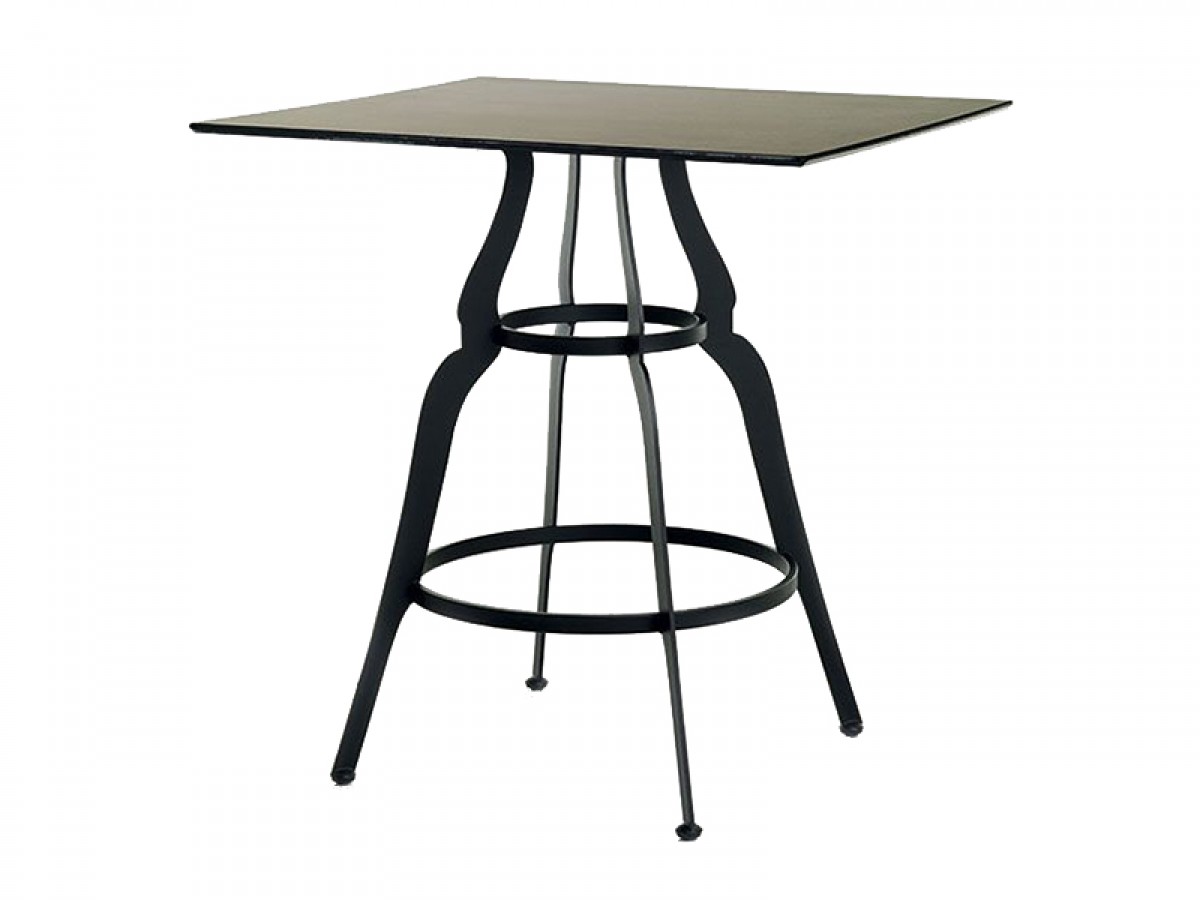 - Masă de terasă realizată din metal, cu 3 sau 4 picioare.