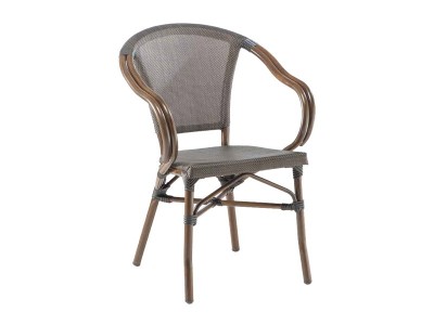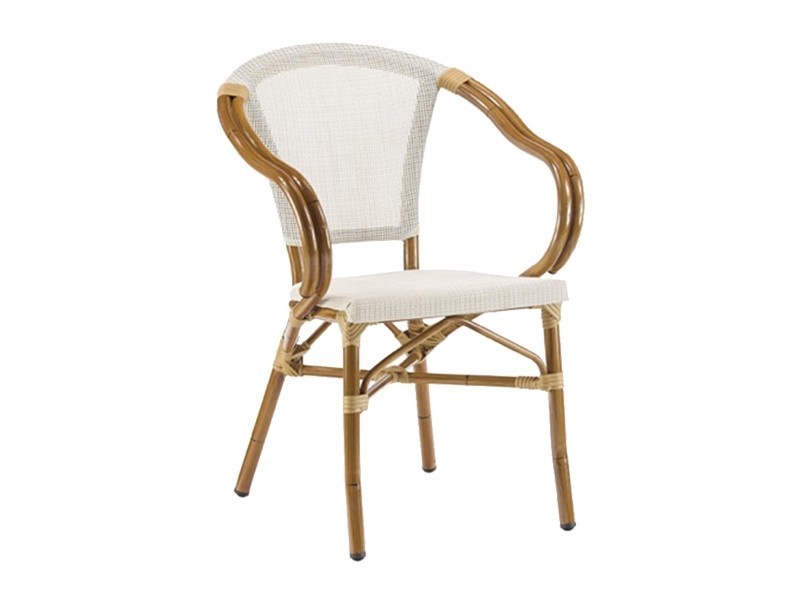 - Scaunul de terasa Bertha este fabricat din aluminiu lăcuit și este acoperit cu textilenă, cu o grosime de 1,5 mm.
