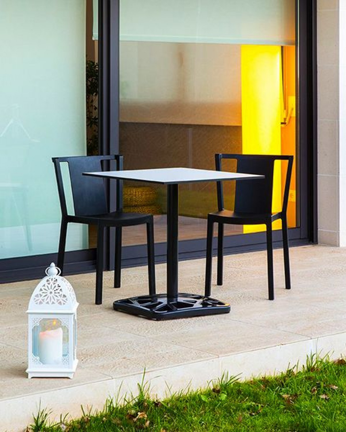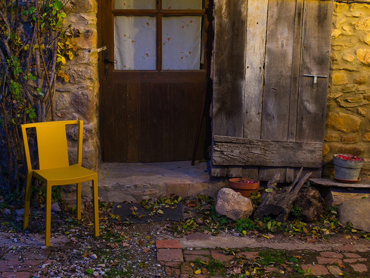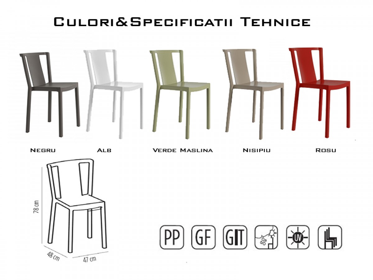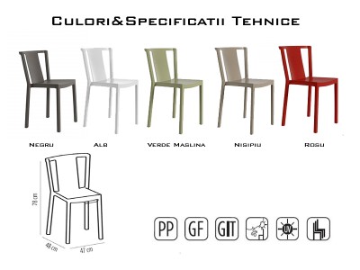 - Scaun de terasă din polipropilenă, cu structură de rezistență din fibră de sticlă.
