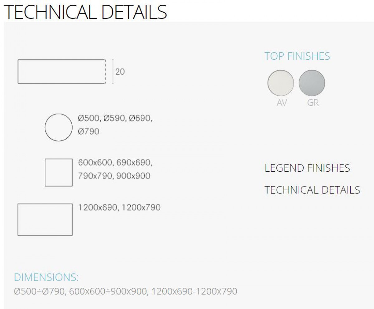 - pătrat - 60x60, 69x69, 79x79, 90x90 cm.