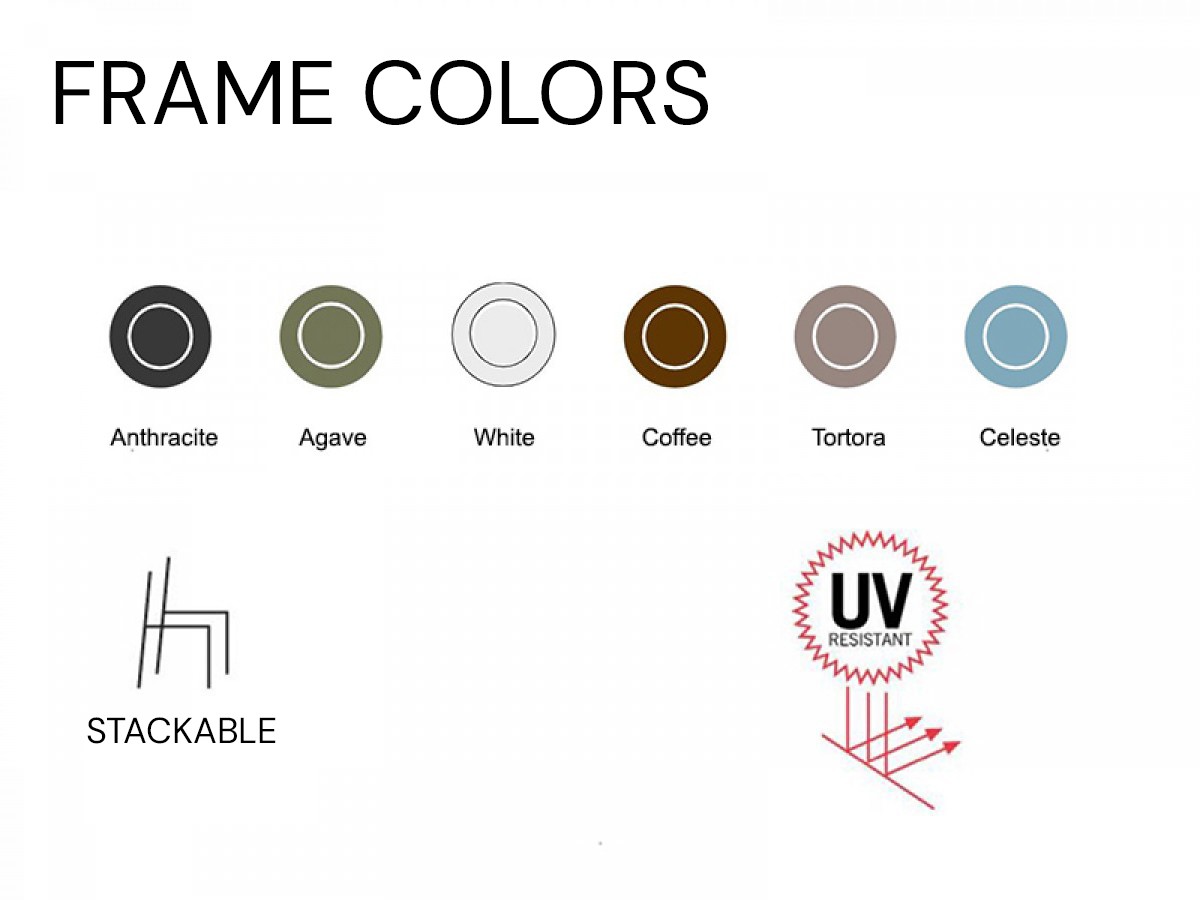 - Se pot suprapune mai multe scaune pentru depozitare și transport.