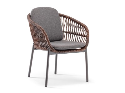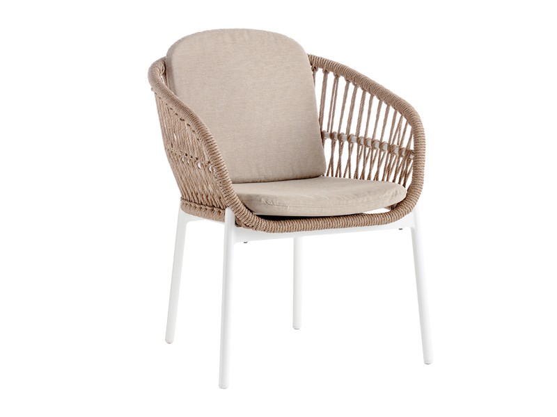 - Acest scaun de exterior cu brațe este realizat dintr-un cadru din aluminiu și acoperit cu frânghie sintetică WinTech pentru o durabilitate sporită și un stil remarcabil.