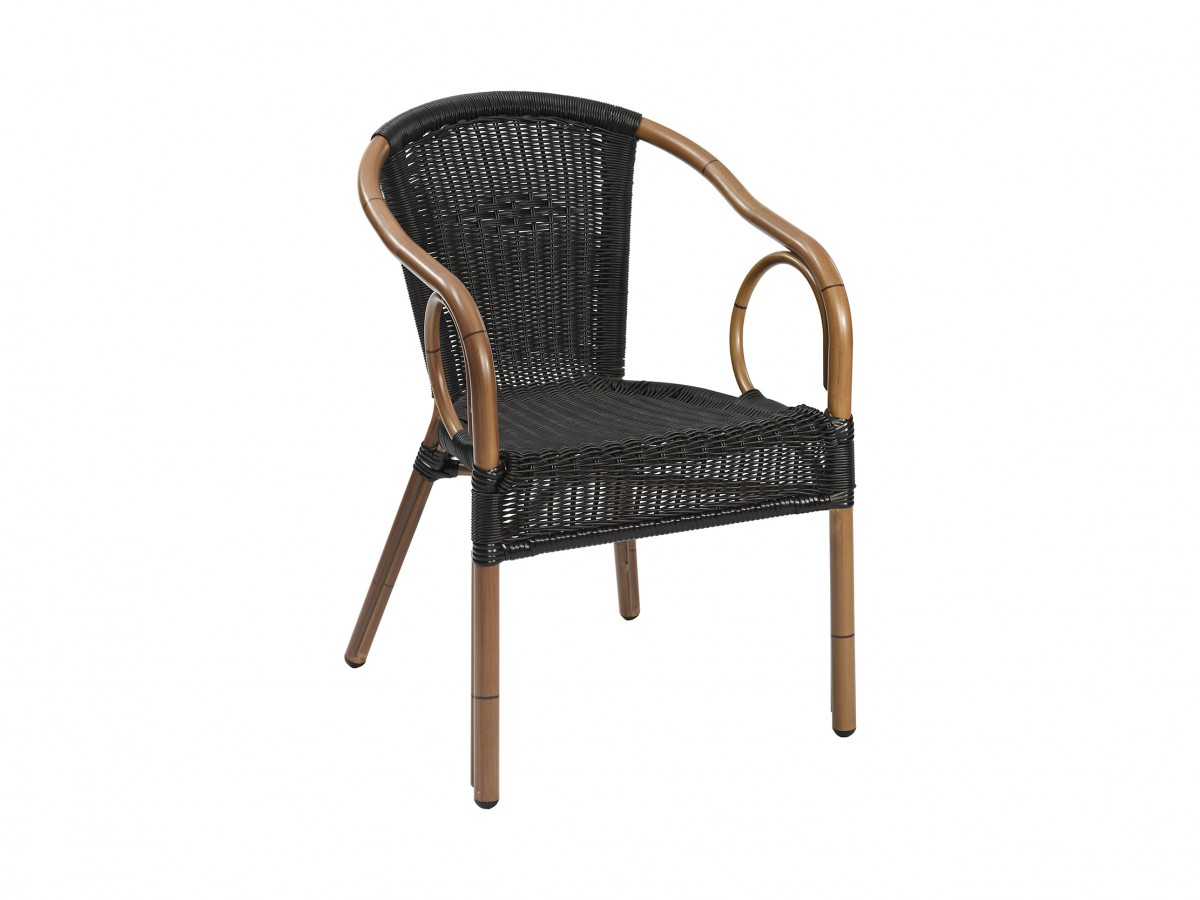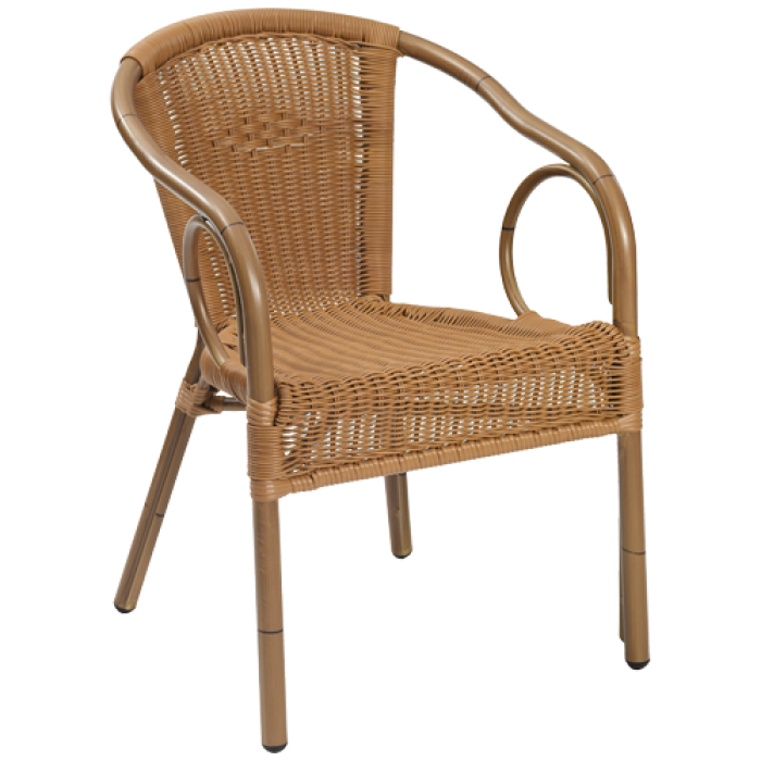 - Scaun de terasă, având cadrul de aluminiu vopsit în câmp electrostatic, de nuanța bamboo.