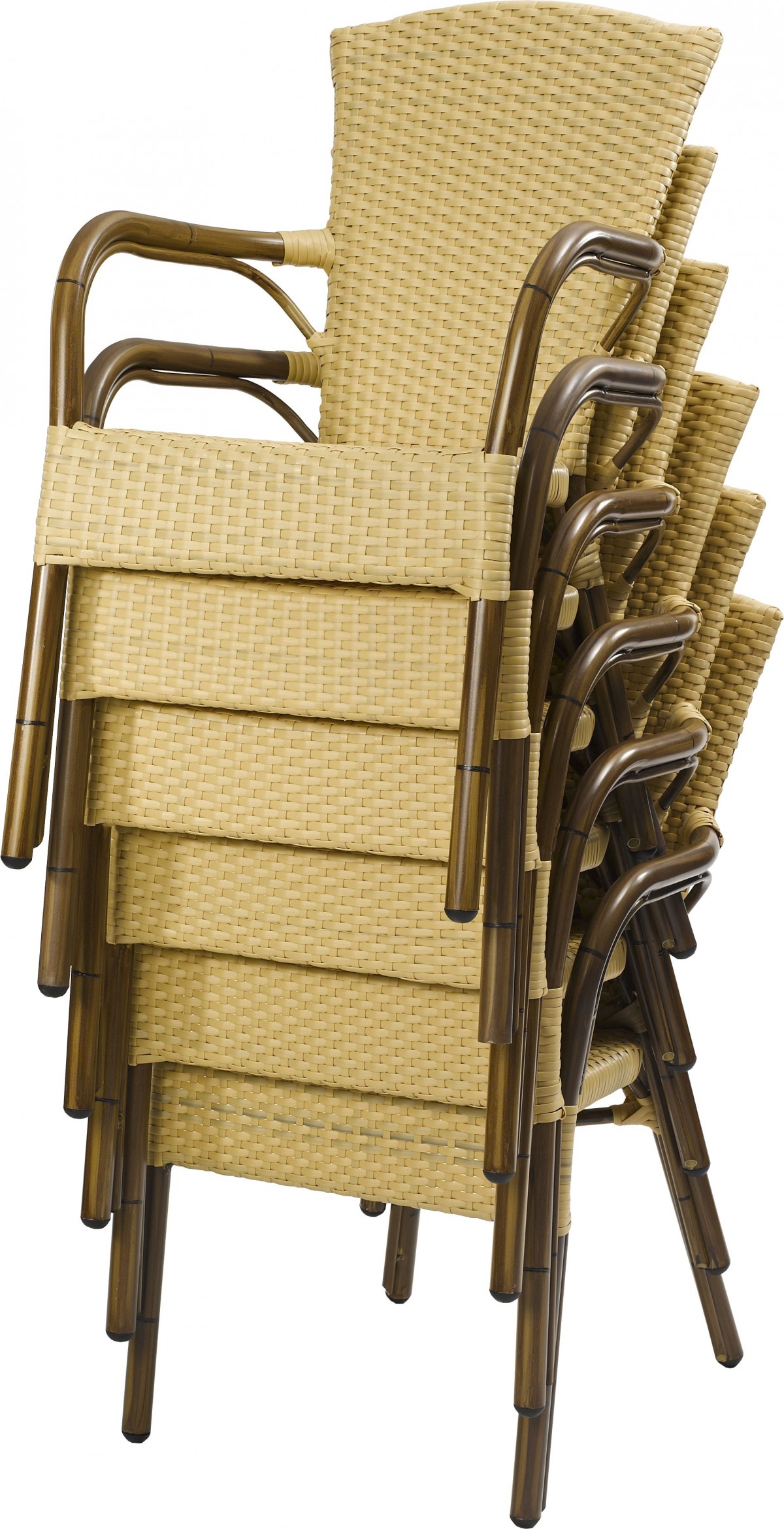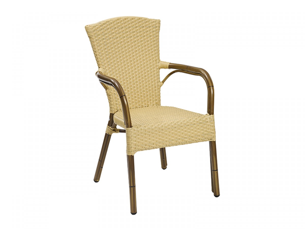 - Scaun de terasă cu structură din aluminiu, cu aspect de ratan.