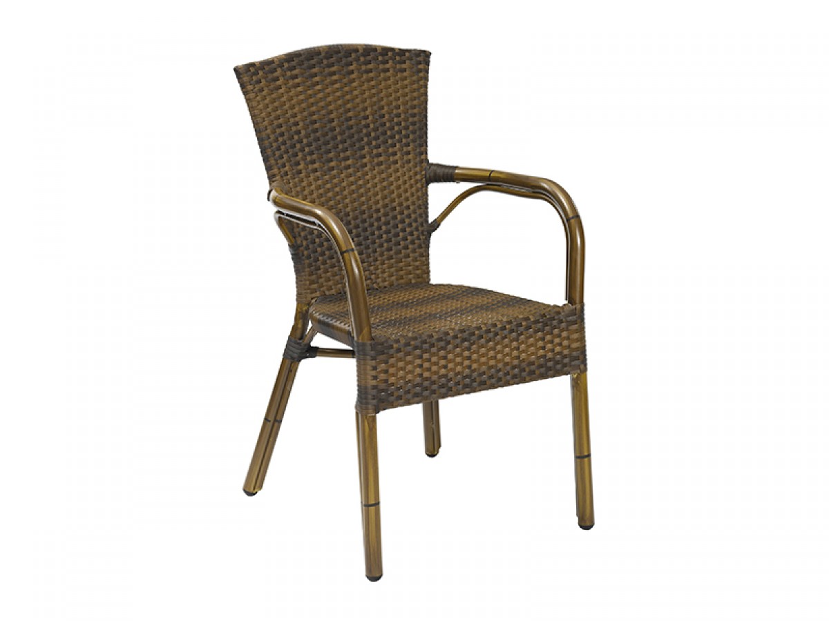 - Scaun de terasă cu structură din aluminiu, cu aspect de ratan.