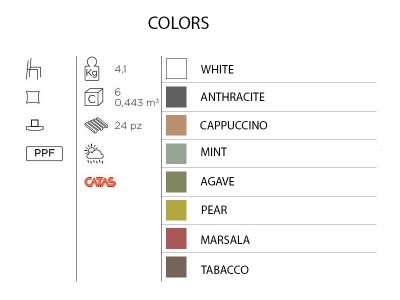- Scaun de terasă realizat din polipropilenă, întărit cu fibră de sticlă.