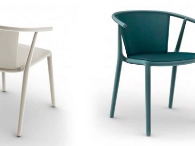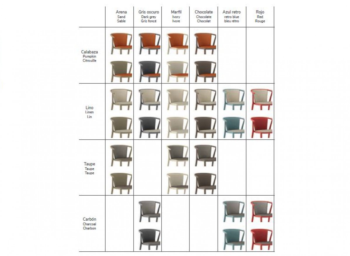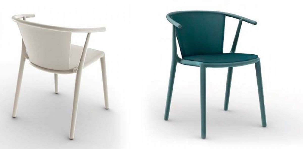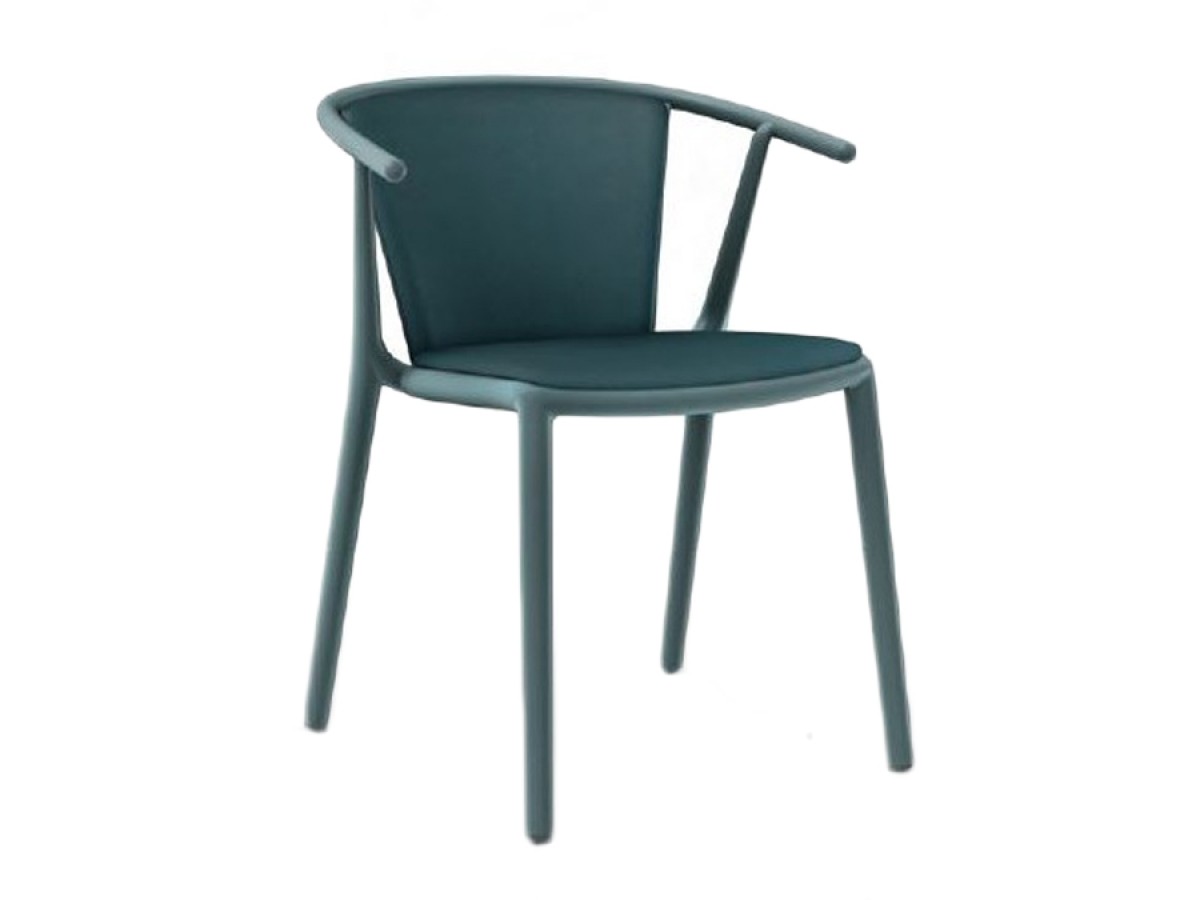 - Scaun de terasă tapițat, realizat din polipropilenă și fibră de sticlă.