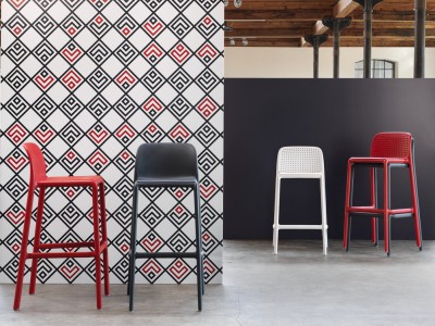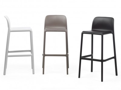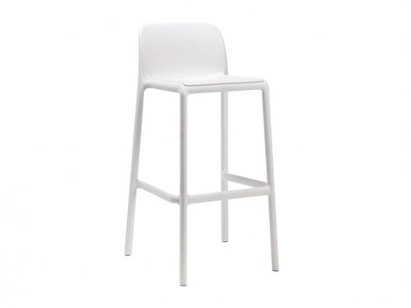 - Scaun de bar având rama din polipropilenă întărită cu fibră de sticlă și rezistent la raze UV.