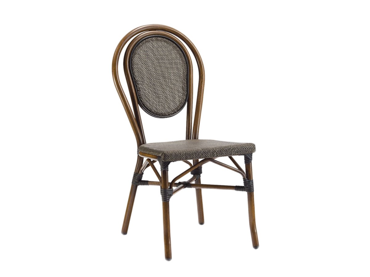 - Scaun pentru terasă, cu structura din aluminiu, ce imită lemnul lăcuit.