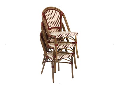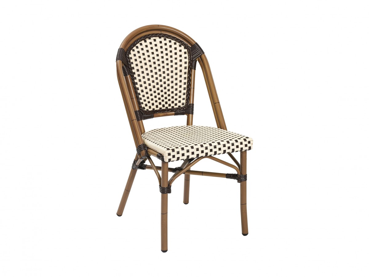 - Scaun de terasă, având cadrul de aluminiu vopsit în câmp electrostatic, o nuanță apropiată de cea bamboo.