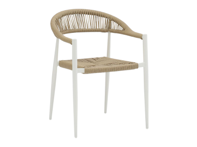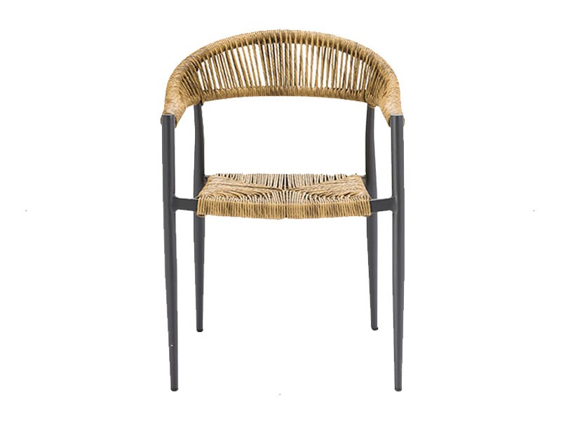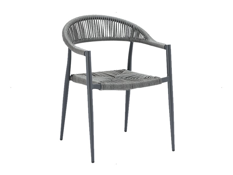 - Scaun de exterior realizat din aluminiu și împletitură din frânghie, în conformitate cu ultimele tendințe.