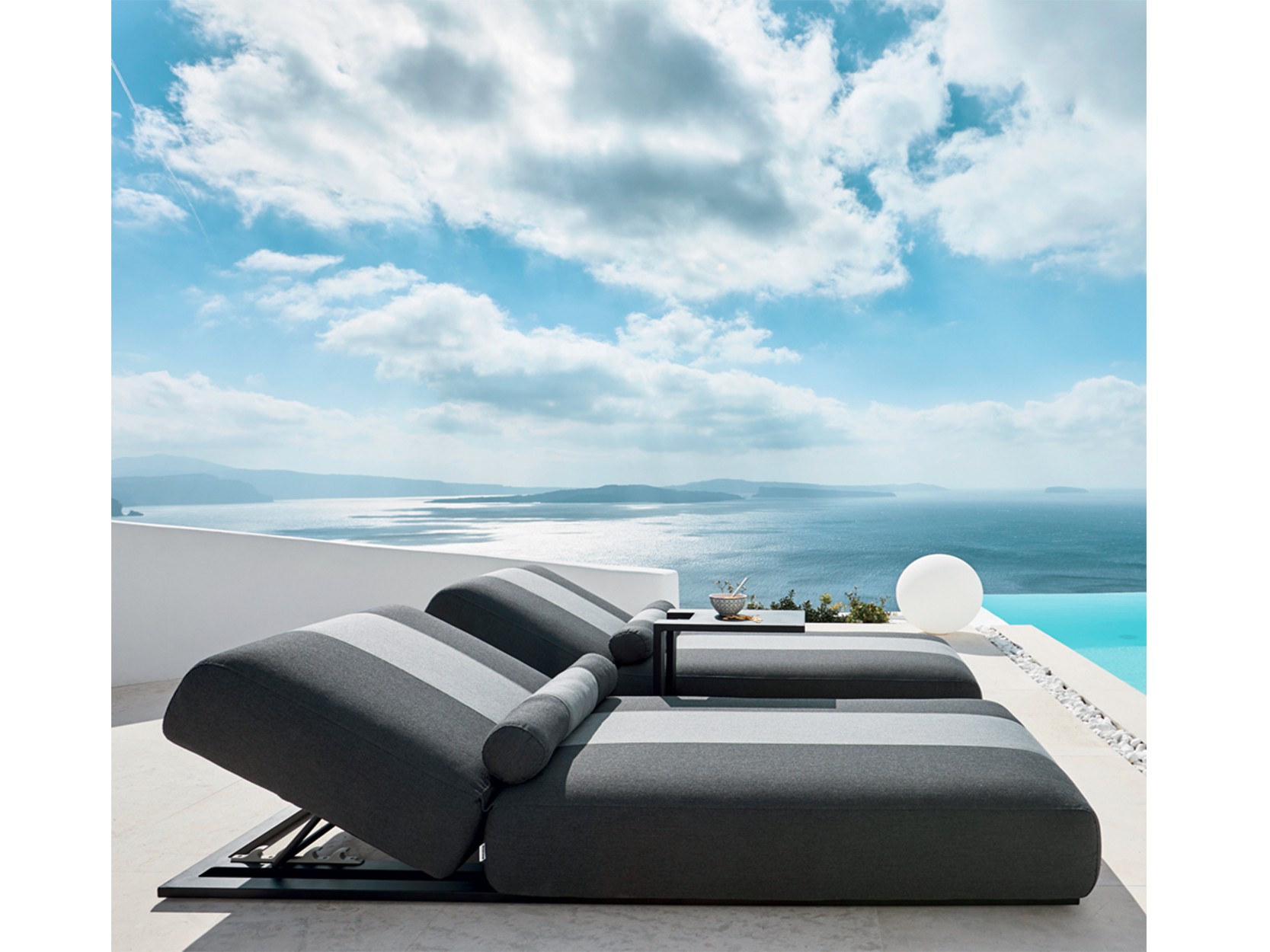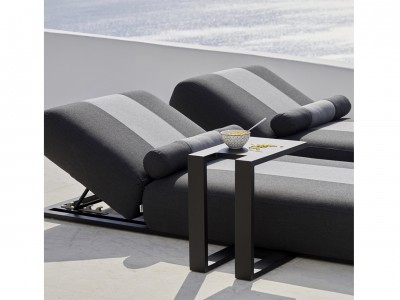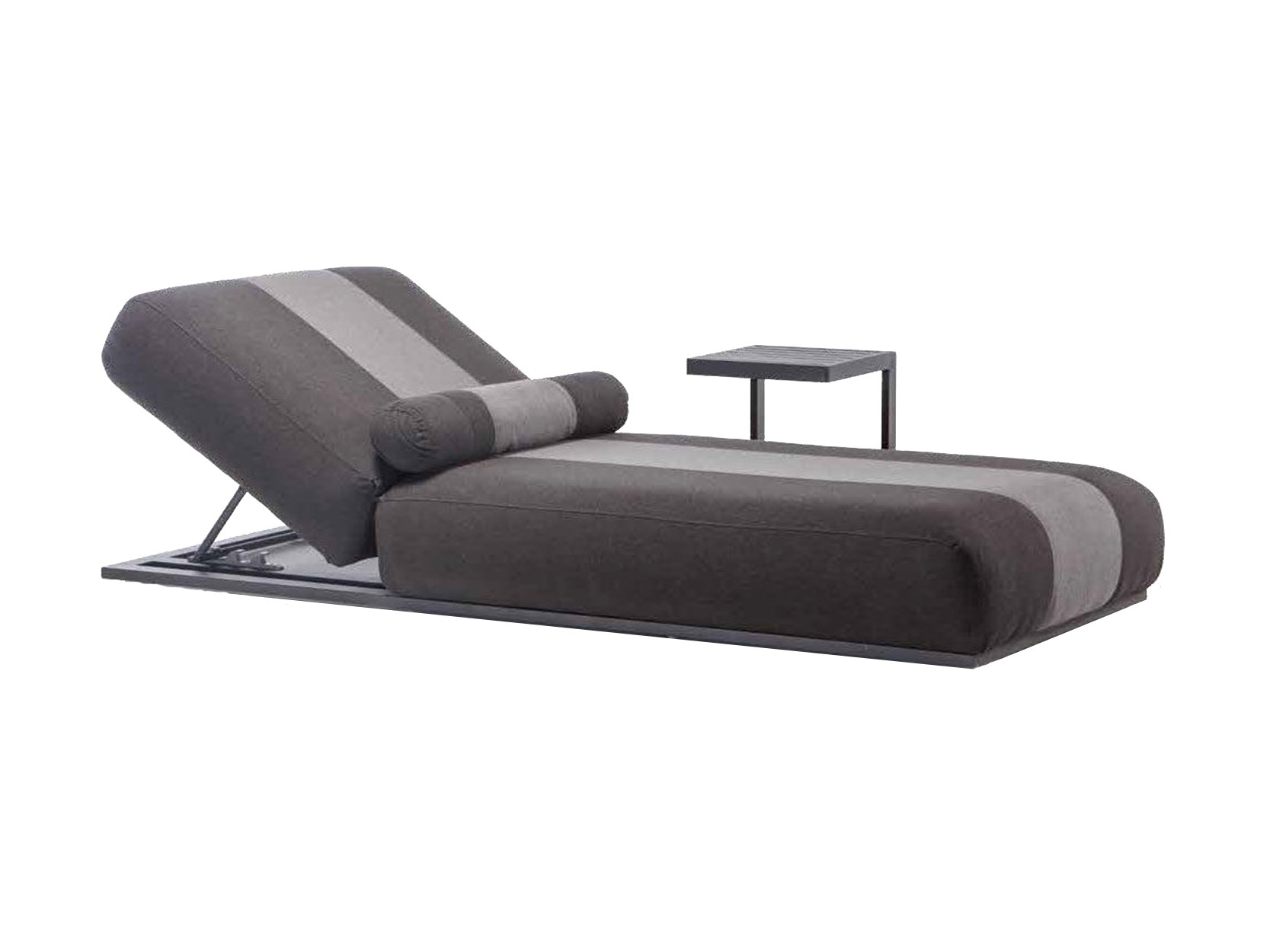 - Șezlong din aluminiu, tapițat cu spumă cu uscare rapidă și material rezistent, bicolor: gri deschis/gri închis.