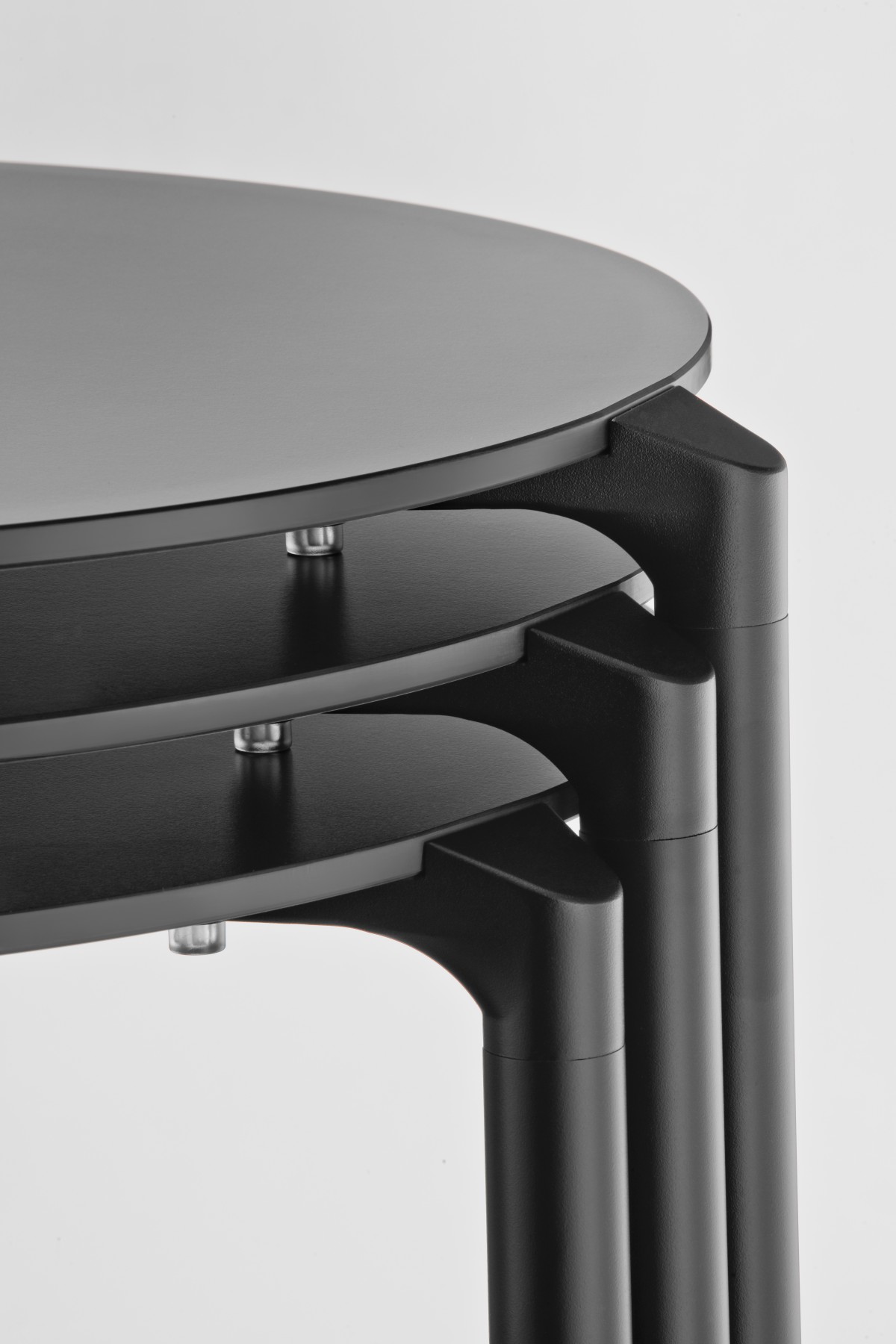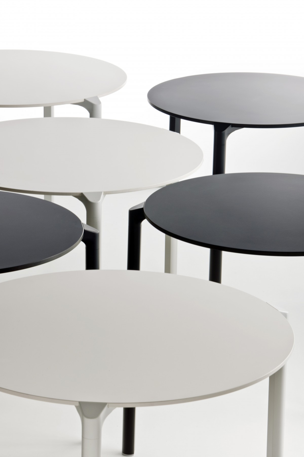- Masa Jump este realizată din aluminiu, cu blat stratificat laminat, pentru a rezista condițiilor de ploaie și razelor UV.