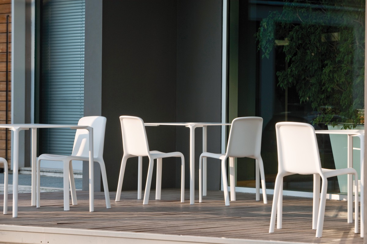 - Pot fi stivuite până la 5 bucăți. Astfel puteți reconfigura spațiul terasei dvs. cu ușurință.