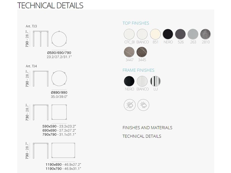 - Masa Jump este realizată din aluminiu, cu blat stratificat laminat, pentru a rezista condițiilor de ploaie și razelor UV.