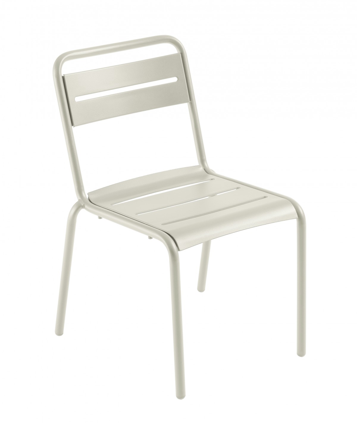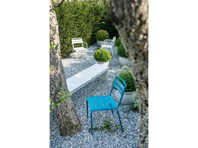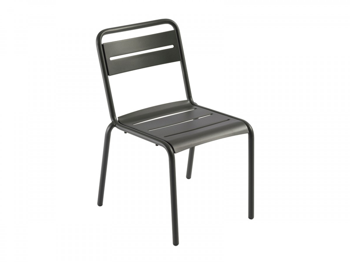 - Scaun de terasă cu structură de oțel, care îl face extrem de ușor și rezistent, făcându-l potrivit pentru utilizarea în aer liber.