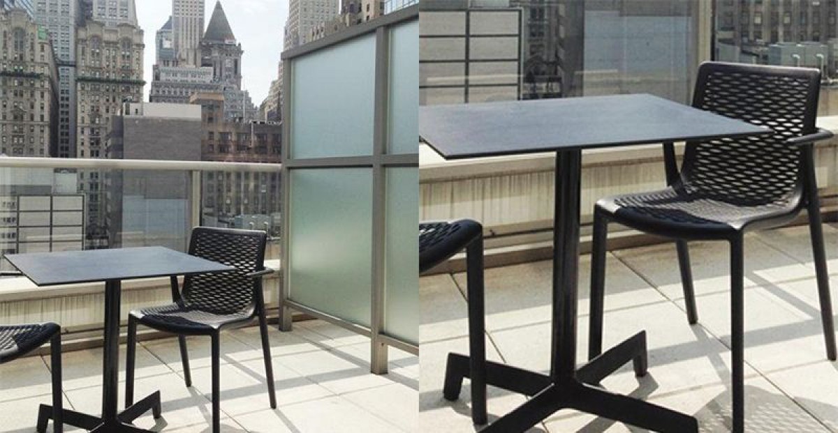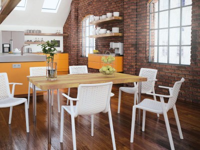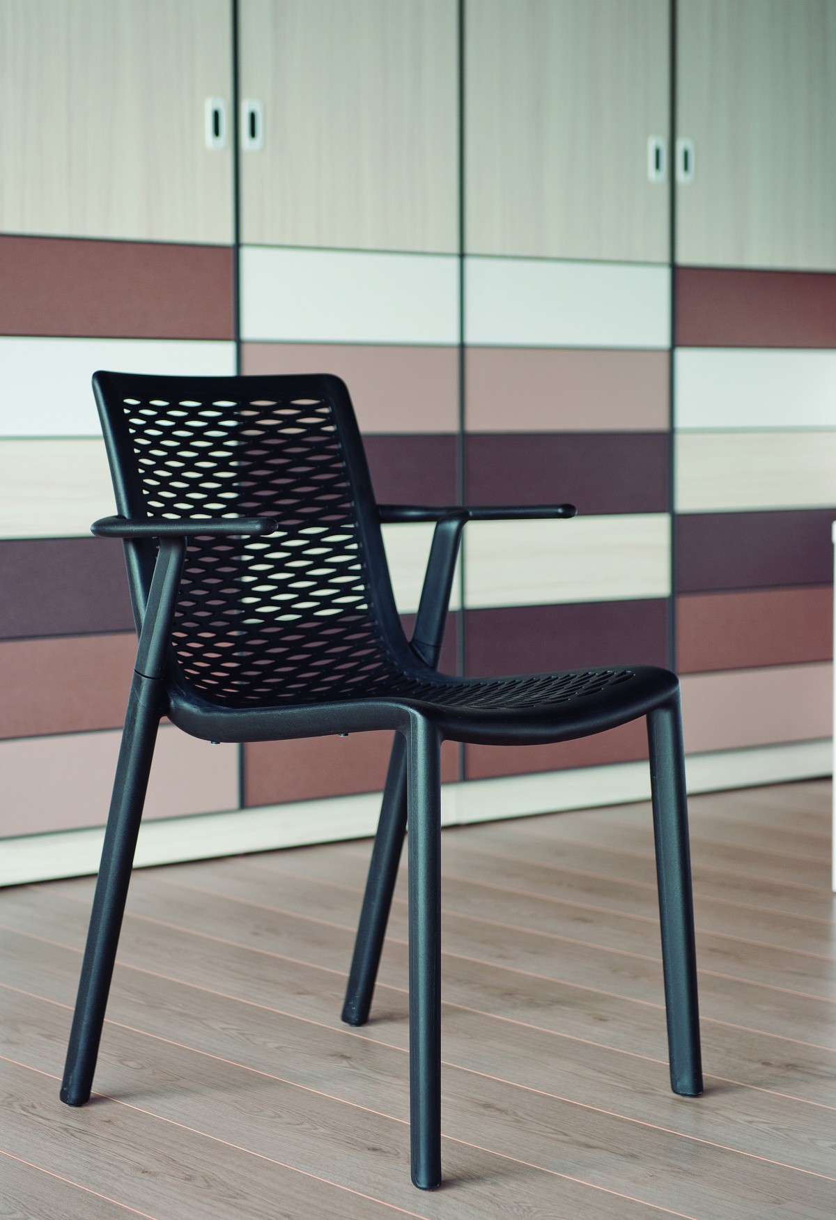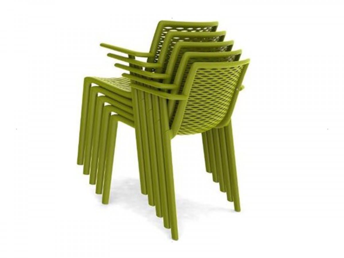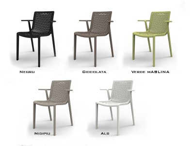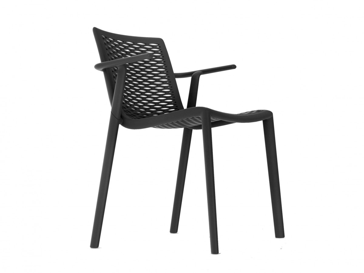 - Scaun de terasă cu brațe, din polipropilenă cu structură de rezistență din fibră de sticlă.