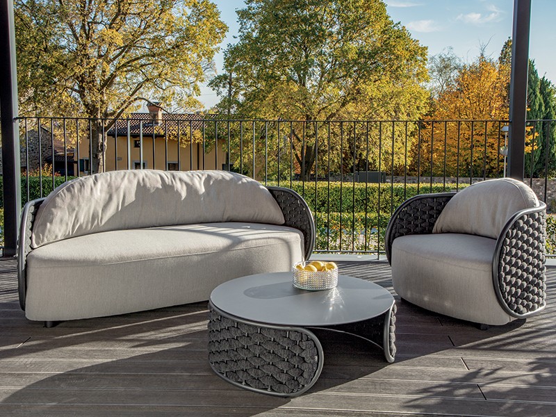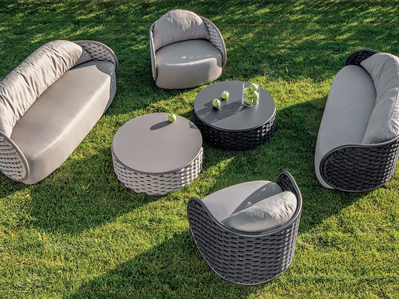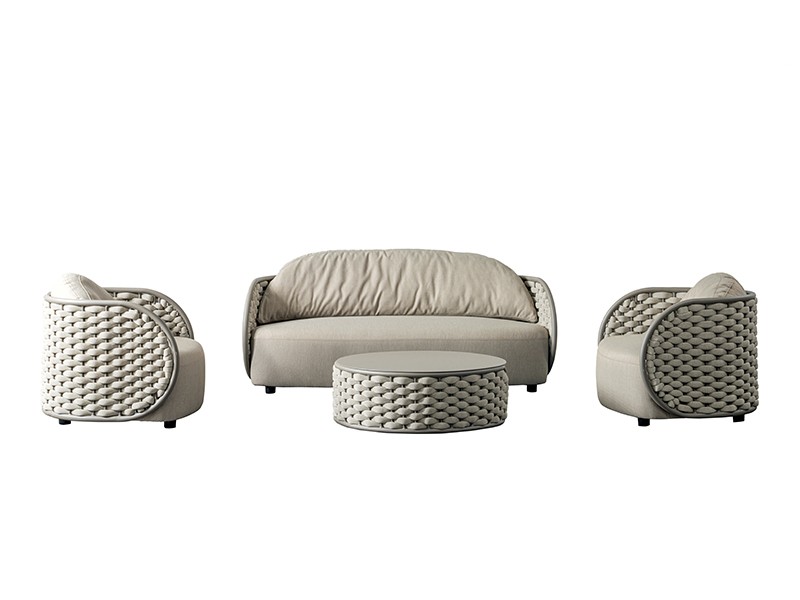 - Fotoliile și canapeaua sunt îmbrăcate cu o combinație sofisticată de textilenă și frânghie din cauciuc, oferind atât durabilitate, cât și un design modern.