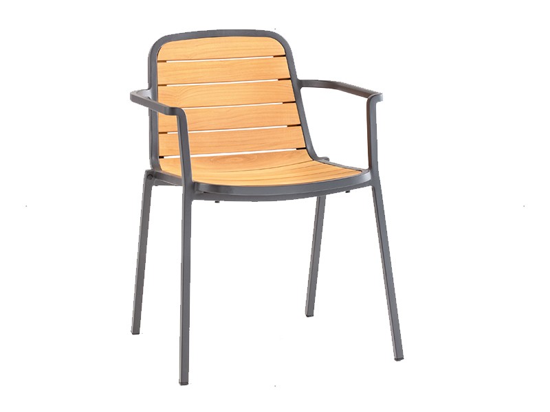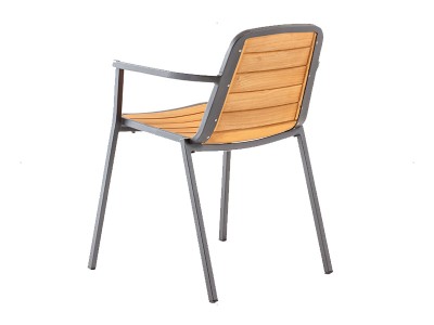 - Dotat cu un cadru din aluminiu și șezut din lemn, acest scaun este conceput pentru a rezista în timp și a aduce un plus de rafinament oricărui decor.