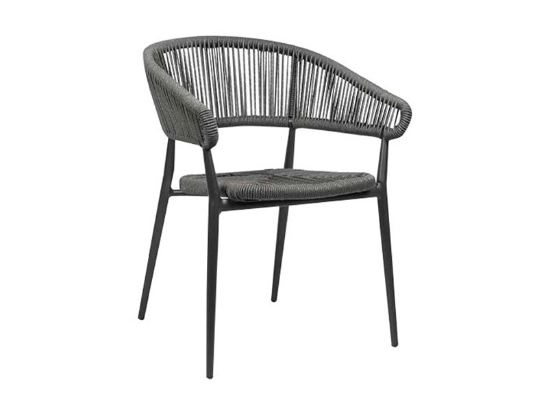 - Scaunul de terasă Noah are un cadru rezistent din aluminiu antracit și este acoperit cu răchită de frânghie rezistentă la UV, care oferă un aspect modern.