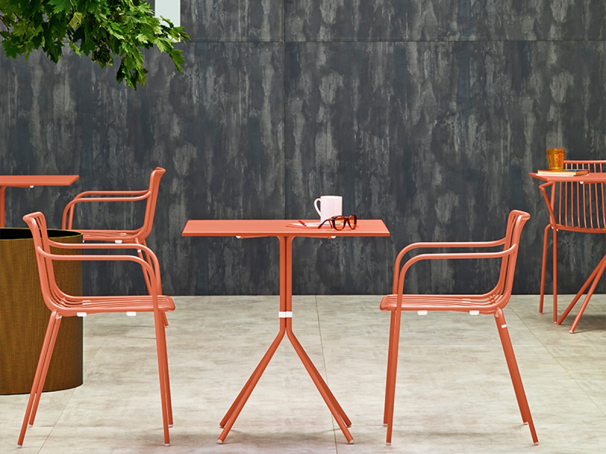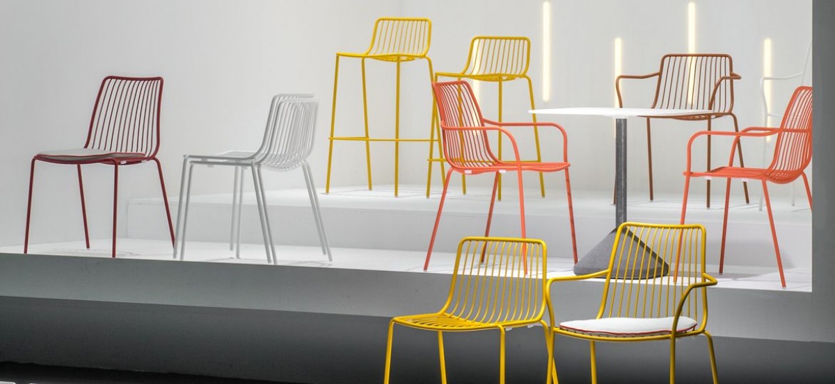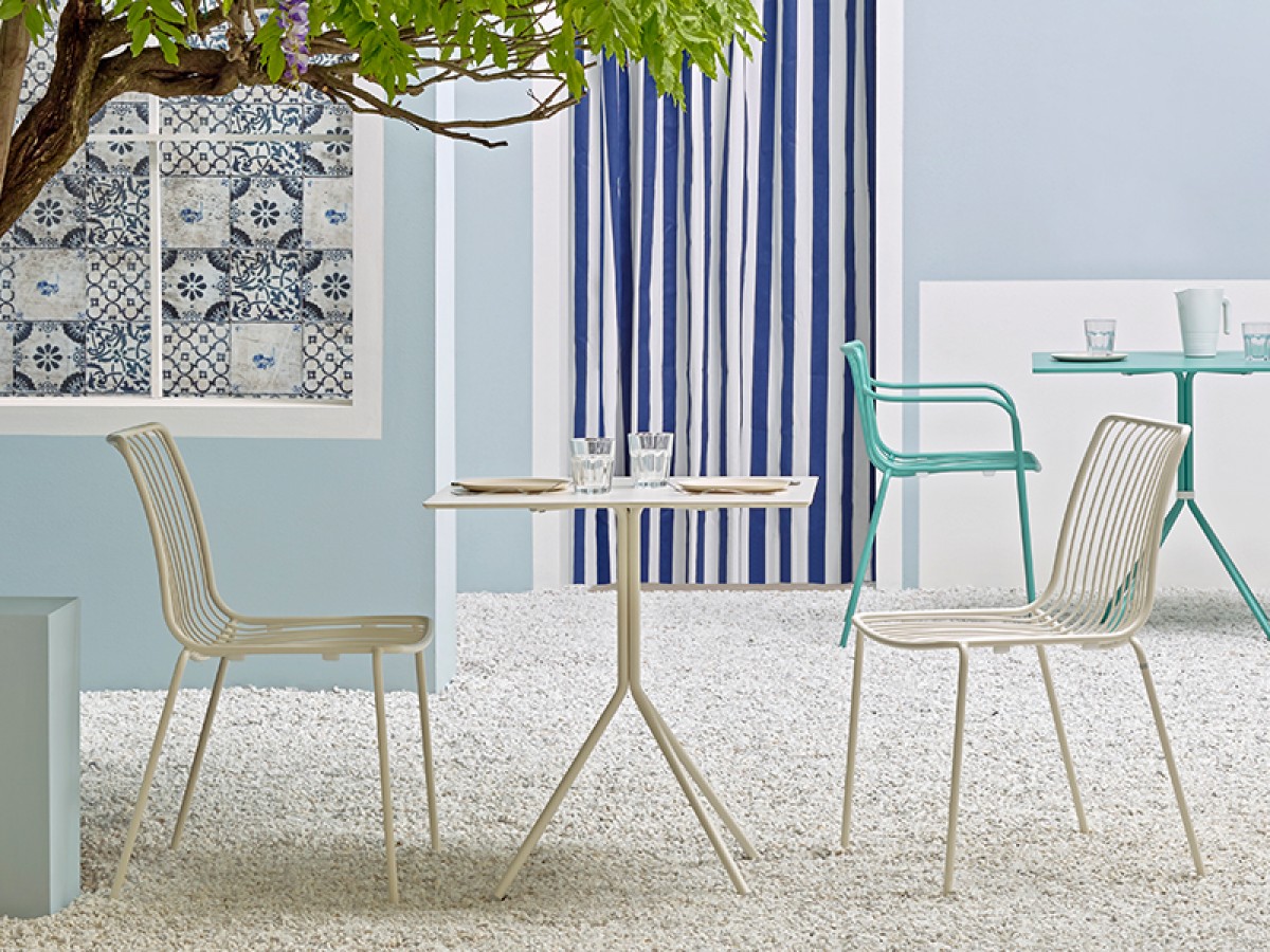 - Scaunul Nolita este realizat în totalitate din oțel, utilizat în special pe terase și exterior.