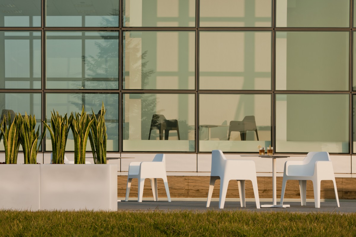 - Rezistent la razele UV și confortabil, scaunul Plus este ideal pentru zonele de relaxare outdoor.
